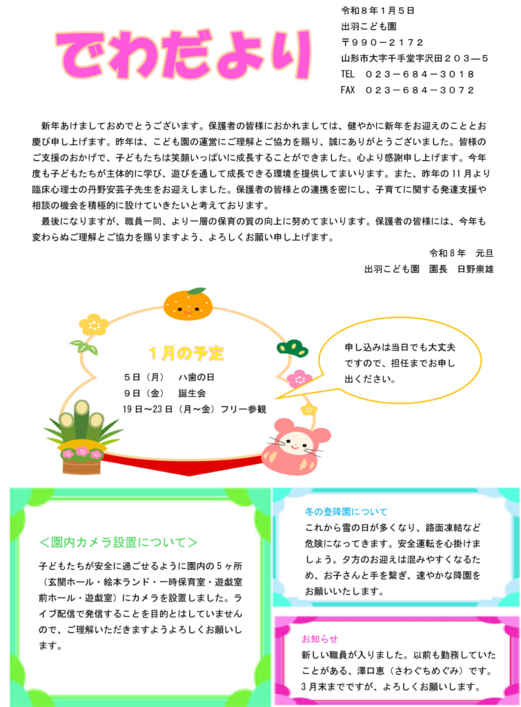 ダウンロード でわだより 2026年1月ダウンロード 今月の予定